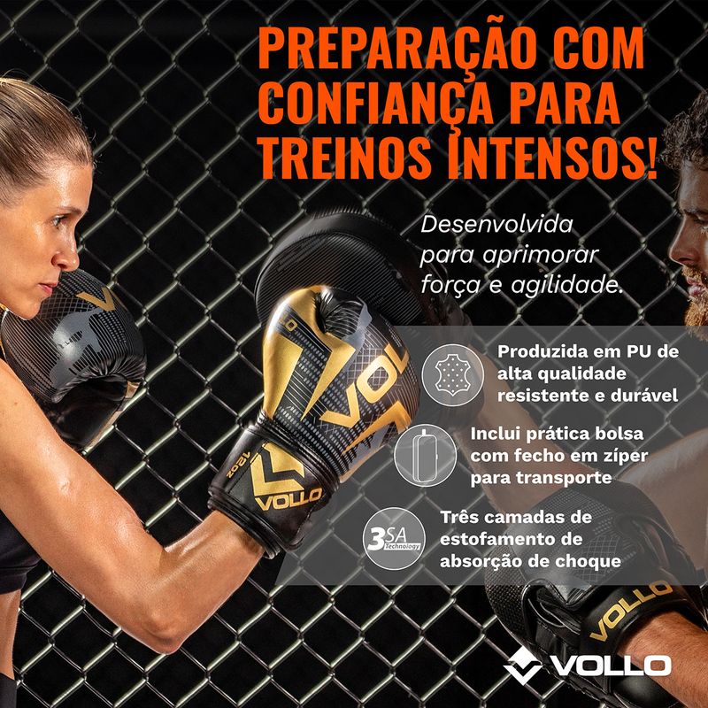 Luva de Boxe Vollo Muay Thai Kickboxing Training 12oz Preta, Cinza e Dourada R$ 389,9020% OFFR$ 311,92ou em até 6x de R$ 51,98Comprar
