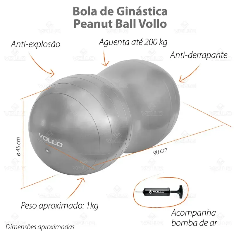 A bola feijão da Vollo foi desenvolvida por um material altamente resistente, suportando até 200kg e antiderrapante que garante melhor aderência sobre o piso. E tem mais, a bola possui tecnologia anti explosão que se for perfurada, a bola se esvazia lentamente assegurando maior segurança ao praticante. Garanta já a sua Bola Feijão Peanut Vollo e de início a sua rotina de saúde e bem estar!