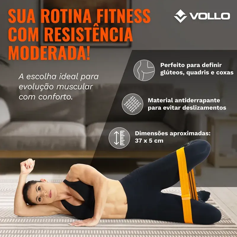 Basta escolher o movimento e o ritmo a ser executado, que você já garante músculos mais fortalecidos, tonificados e bem preparados. O magnífico elástico para exercícios da Vollo, atua pontualmente nas musculaturas do quadril (quadríceps), glúteos, nas regiões externas e internas das coxas (abdutores, adutores) e panturrilha, mas também pode ser utilizada para outros grupos musculares, sejam estes inferiores ou superiores.