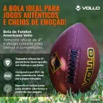 Imagine-se em uma partida de futebol americano onde um lançamento perfeito de bola foi dado, e felizmente partiu de suas próprias mãos... Com esse intuito, a Bola de Futebol Americano Vollo foi plenamente dedicada a suprir todos os requisitos desse esporte, seguindo à risca as especificações técnicas das federações e confederações do futebol americano.