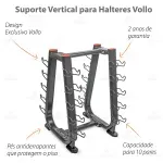 Está na hora de “tirar o peso do corpo” e voltar a ficar leve! O Expositor de Halteres Vollo é um suporte para armazenamento dos pesos que mantém a organização e praticidade do seu local de treino. Sua estrutura comporta até 10 pares de halteres e ocupa pouco espaço, tornando mais funcional e agradável.