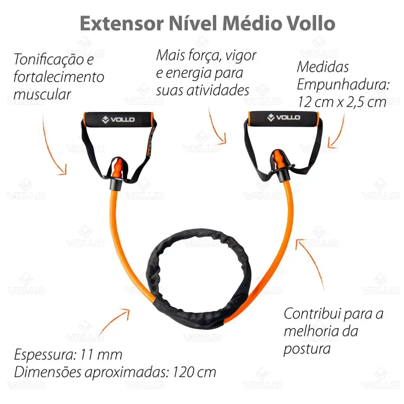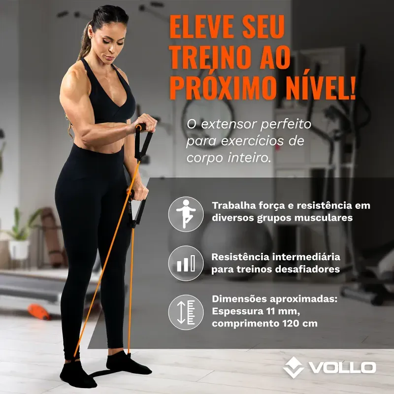 Poder no controle das suas mãos! O Extensor Elástico Vollo foi especialmente projetado para a tonificação, fortalecimento dos músculos e condicionamento físico, garantindo um treino mais eficaz e completo. O extensor elástico possibilita executar uma série de movimentos que trabalham todos os grupos musculares, proporcionando força e estabilidade das articulações dos braços, abdômen, glúteos e coxas. Além de também favorecer no alinhamento da postura, potencializar a coordenação e mobilidade dos principais motores do corpo.