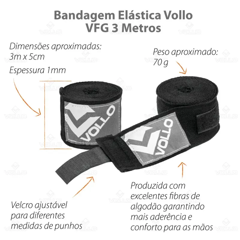 Desenvolvida para profissionais e amantes de artes marciais, a Bandagem Elástica Vollo VFG 3 Metros tem um papel muito importante na prática de atividades como o boxe por exemplo, pois com ela é possível uma melhor absorção de impactos, reduzindo o risco de possíveis lesões e atritos. A bandagem é um acessório essencial para garantir segurança e proteção na prática de lutas e artes marciais, como Boxe, Muay Thai e MMA.