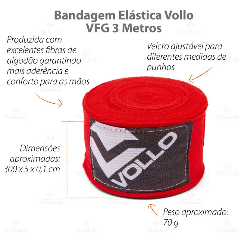 Desenvolvida para profissionais e amantes de artes marciais, a Bandagem Elástica Vollo VFG 3 Metros tem um papel muito importante na prática de atividades como o boxe por exemplo, pois com ela é possível uma melhor absorção de impactos, reduzindo o risco de possíveis lesões e atritos. A bandagem é um acessório essencial para garantir segurança e proteção na prática de lutas e artes marciais, como Boxe, Muay Thai e MMA.