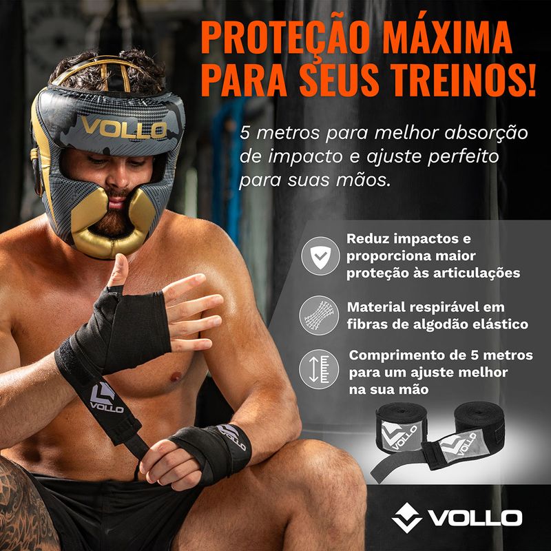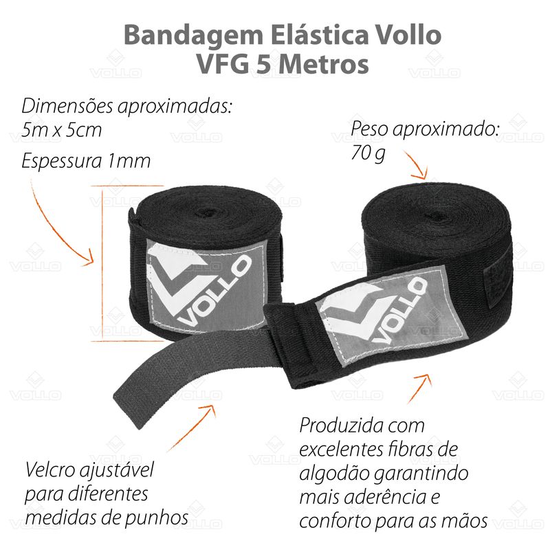 Desenvolvida para profissionais e amantes de artes marciais, a Bandagem Elástica Vollo VFG 5 Metros tem um papel muito importante na prática de atividades como o boxe por exemplo, pois com ela é possível uma melhor absorção de impactos, reduzindo o risco de possíveis lesões e atritos. A bandagem é um acessório essencial para garantir segurança e proteção na prática de lutas e artes marciais, como Boxe, Muay Thai e MMA