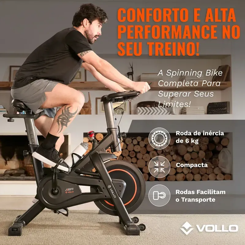 A Bicicleta Spinning de Fricção Vollo é a escolha ideal para quem busca treinos de alta performance no conforto de casa. Seu design moderno garante funcionalidade e estilo, oferecendo uma estrutura robusta, com quadro em aço e sistema de resistência por fricção, que simula com precisão os percursos reais. Equipada com roda de inércia de 6 kg e transmissão por correia, ela garante movimentos suaves, mesmo em treinos mais intensos, promovendo uma experiência de ciclismo indoor eficiente e de baixo impacto.