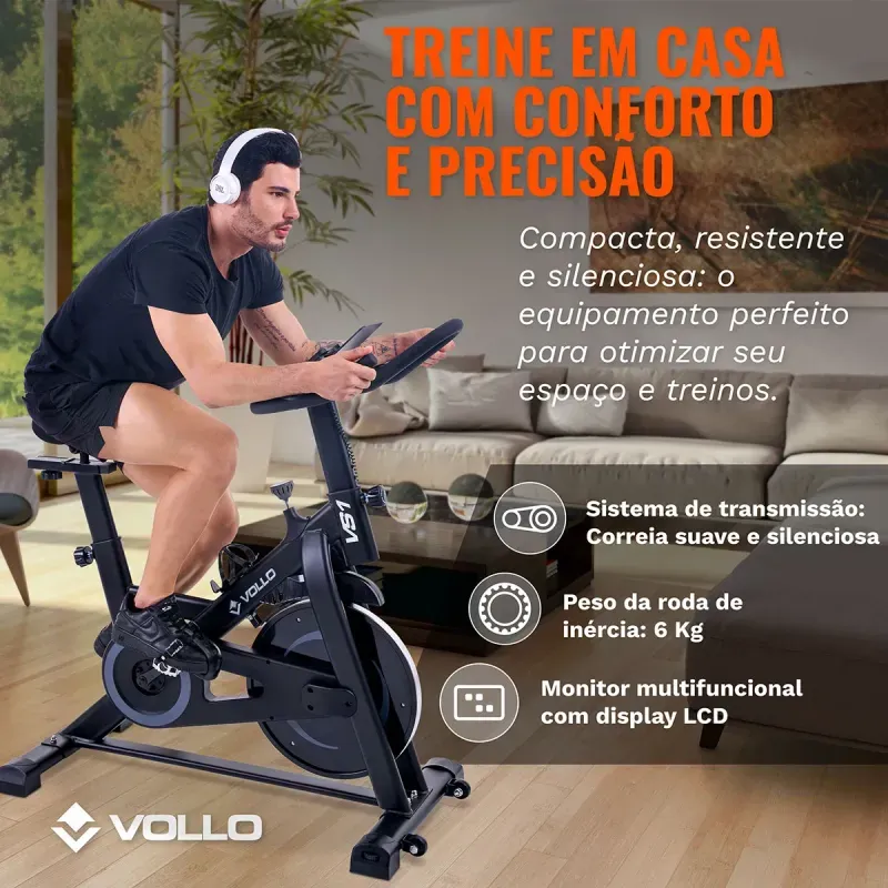 Bicicleta Spinning Magnética Vollo. Ideal para iniciantes e entusiastas, este equipamento oferece um desempenho imbatível.