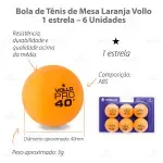 A Bola de Tênis de Mesa Laranja com 6 Unidades Vollo possui resistência, durabilidade e qualidade acima da média, graças aos rigorosos processos de fabricação que seguem as especificações técnicas das federações e confederações de tênis de mesa. Além de testes contínuos em laboratório que garante a excelência do produto.