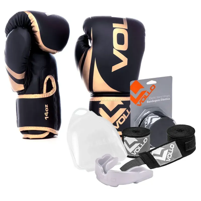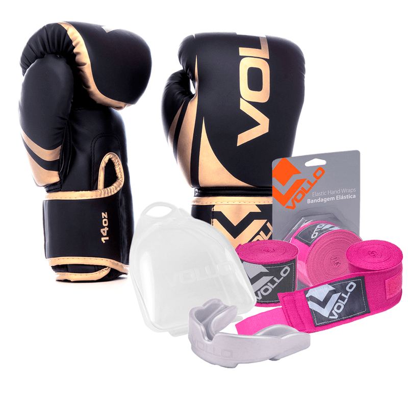 Kit Boxe Luva 14Oz Dourado + Protetor Bucal + Bandagem Preta R$ 509,9029% OFFR$ 359,90ou em até 7x de R$ 51,41Comprar
