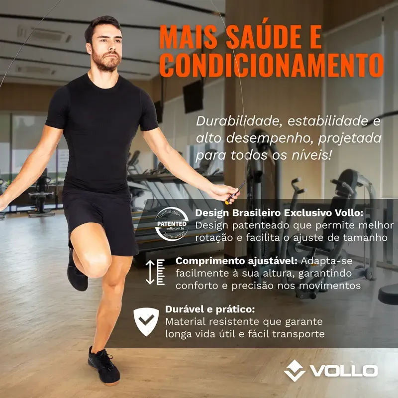 Pular corda é um exercício que está incluído na rotina desde atletas iniciantes aos mais profissionais, por ser um exercício completo para a saúde que ajuda no fortalecimento e tonificação dos músculos, aumento da resistência física, além de queimar calorias e melhorar a sua performance durante as atividades. Só não vale ficar parado! Garanta agora mesmo a sua Corda de Pular de PVC Vollo e melhore sua saúde e bem-estar!