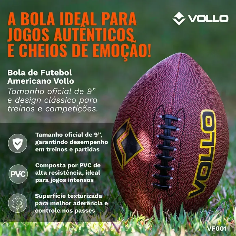 Bola de Futebol Americano Vollo Tamanho Oficial 9 Marrom R$ 169,9024% OFFR$ 129,90ou em até 2x de R$ 64,95Comprar