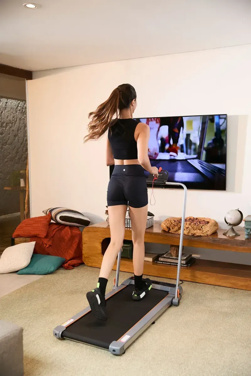 Transforme qualquer ambiente em uma verdadeira pista de treino com a Esteira Ergométrica Dobrável Portátil 2 em 1 Vollo. Projetada para se adaptar à sua rotina, ela oferece duas formas práticas de uso: caminhar com os braços abaixados até 6 km/h ou correr com os braços de apoio levantados até 10 km/h, tudo isso sem abrir mão da segurança e do conforto. Com design inteligente, controle remoto e painel integrado, essa esteira une praticidade e desempenho em um único equipamento compacto e fácil de armazenar tornando a escolha perfeita para ambientes com espaço limitado.