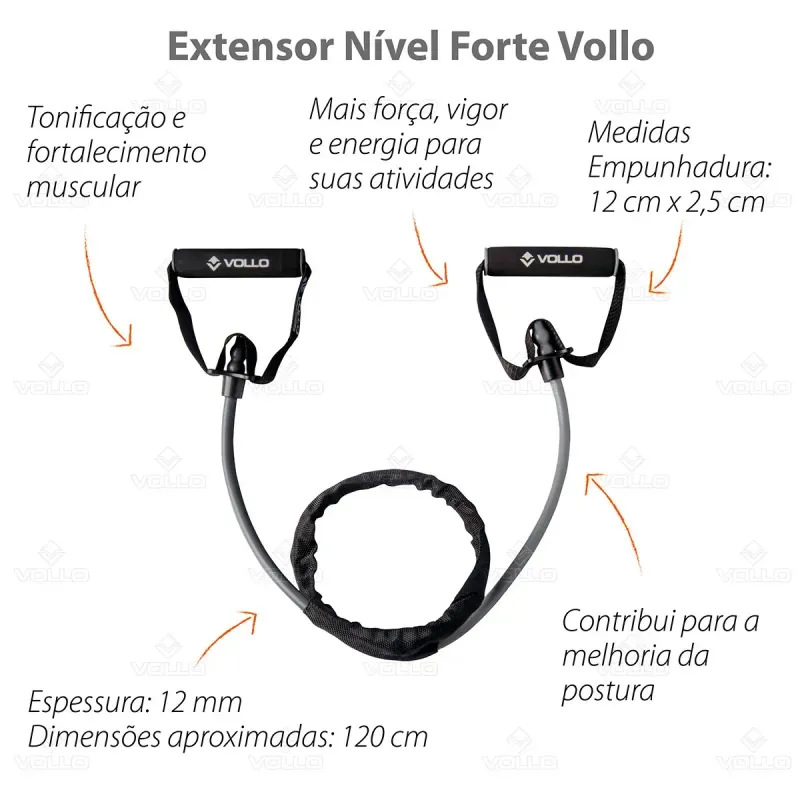 Poder no controle das suas mãos! O Extensor Elástico Vollo foi especialmente projetado para a tonificação, fortalecimento dos músculos e condicionamento físico, garantindo um treino mais eficaz e completo. O extensor elástico possibilita executar uma série de movimentos que trabalham todos os grupos musculares, proporcionando força e estabilidade das articulações dos braços, abdômen, glúteos e coxas. Além de também favorecer no alinhamento da postura, potencializar a coordenação e mobilidade dos principais motores do corpo.
