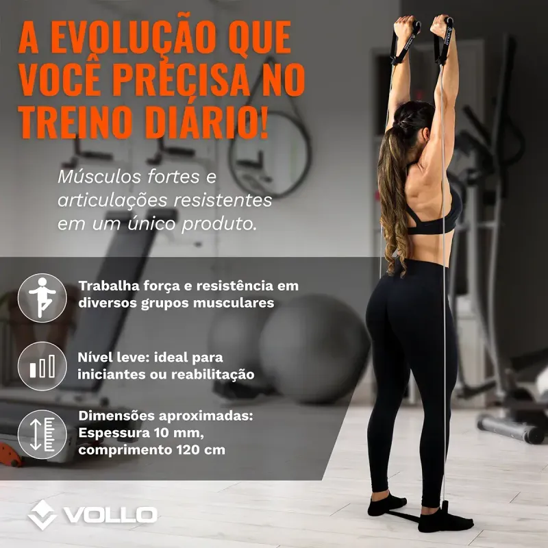 Poder no controle das suas mãos! O Extensor Elástico Vollo foi especialmente projetado para a tonificação, fortalecimento dos músculos e condicionamento físico, garantindo um treino mais eficaz e completo. O extensor elástico possibilita executar uma série de movimentos que trabalham todos os grupos musculares, proporcionando força e estabilidade das articulações dos braços, abdômen, glúteos e coxas. Além de também favorecer no alinhamento da postura, potencializar a coordenação e mobilidade dos principais motores do corpo.