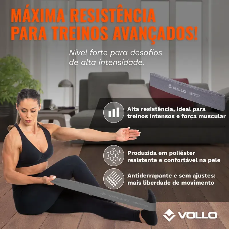 A Loop Band Vollo está no pódio dos equipamentos favoritos que oferecem um melhor desempenho, fortalecimento e o tão almejado molde para as curvas do corpo. A Faixa Elástica de Poliéster Nível Forte Vollo é prática, multifuncional e resistente, ideal para treinar cadeias musculares menores, como, quadríceps, glúteos, panturrilhas, regiões internas e externas das coxas, ocasionando em aumento da força muscular, melhor condicionamento físico e estabilidade das articulações.