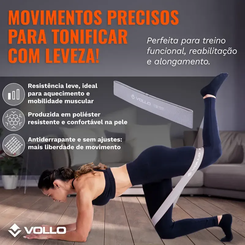 A Loop Band Vollo está no pódio dos equipamentos favoritos que oferecem um melhor desempenho, fortalecimento e o tão sonhado molde para as curvas do corpo. A Faixa Elástica de Poliéster Nível Leve Vollo é prática, multifuncional e resistente, ideal para treinar cadeias musculares menores, como, quadríceps, glúteos, panturrilhas, regiões internas e externas das coxas, ocasionando em aumento da força muscular, melhor condicionamento físico e estabilidade das articulações.