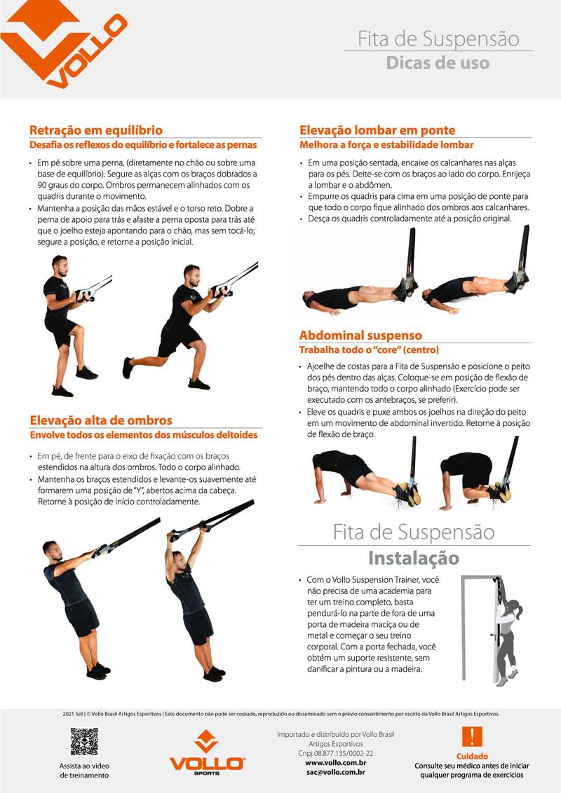 Já imaginou trabalhar todos os músculos do corpo utilizando um único equipamento? A Fita de Treino de Suspensão Vollo, também conhecida através do treinamento TRX, permite realizar diversos movimentos de exercícios que trabalham todos os grupos musculares do corpo superior e inferior. Dessa forma, a fita TRX garante um melhor preparo do condicionamento físico, fortalecimento muscular, equilíbrio, coordenação motora, ganho de massa ou até mesmo no auxílio da perda de peso. E é devido a essa extrema versatilidade que a fita de suspensão se tornou tão utilizada e insubstituível para praticantes de treinos funcionais, crossfit, pilates e outros.