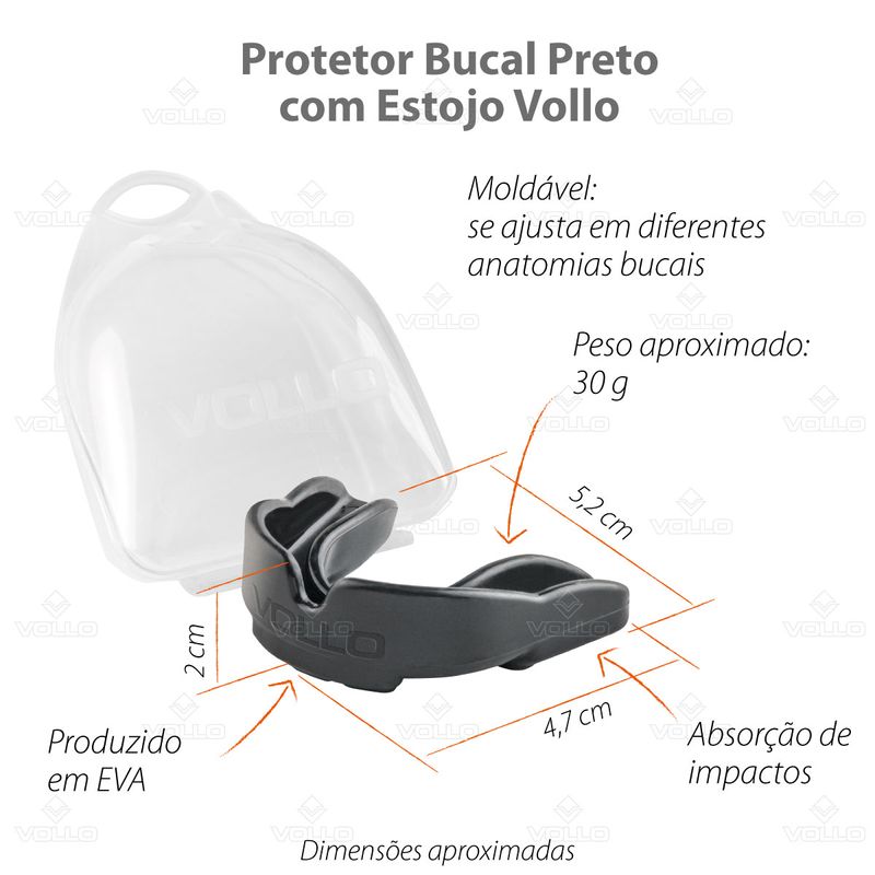 Pensando na sua segurança e bem-estar durante os treinos e competições, o Kit inclui o Protetor Bucal Vollo, um equipamento essencial e indispensável para diversas modalidades de artes marciais como Boxe, Muay Thai, MMA, Jiu-Jitsu e Kickboxing. Fabricado em EVA macio e flexível, este protetor bucal se adapta perfeitamente a diferentes anatomias bucais, oferecendo alta capacidade de absorção e dissipação de impactos, protegendo você contra possíveis danos físicos. Para sua comodidade, o protetor bucal também acompanha um estojo portátil para armazenamento higiênico. Invista na sua proteção, surpreenda seus oponentes e treine com a máxima segurança e performance com o Kit Vollo!