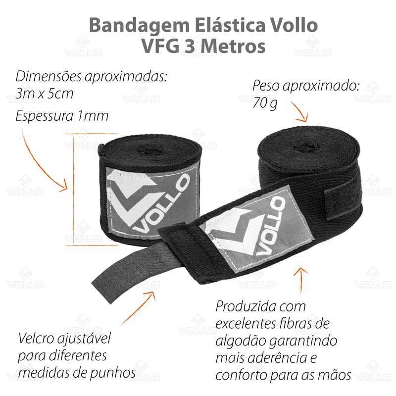 Para complementar sua preparação, a Bandagem Elástica Vollo de 3 Metros é um acessório indispensável na absorção de impactos e na redução do risco de lesões durante seus treinos de artes marciais. Produzida com fibras de algodão, oferece aderência e conforto superiores, enquanto o acabamento em velcro permite ajustes precisos para diferentes medidas de punho, otimizando seu tempo de reação e ampliando a precisão dos seus movimentos. Não deixe a segurança de lado, garanta já seu kit e treine com a confiança dos verdadeiros lutadores!