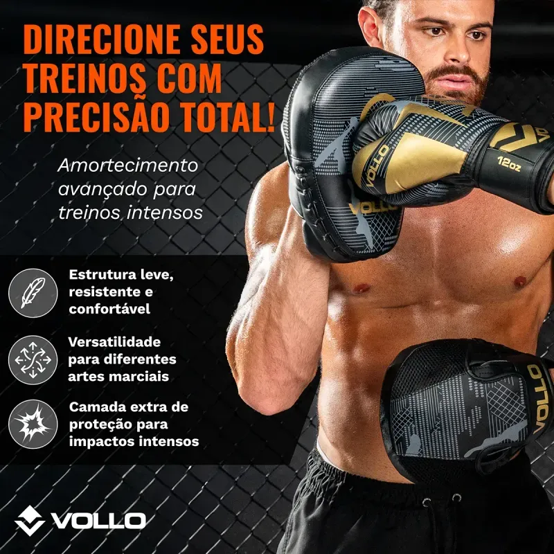 A Luva Manopla de Foco Vollo foi desenvolvida para treinos que requerem mais objeção e aprimoramentos! Sua estrutura resistente atinge maior capacidade de amortecimento e absorção de impactos.