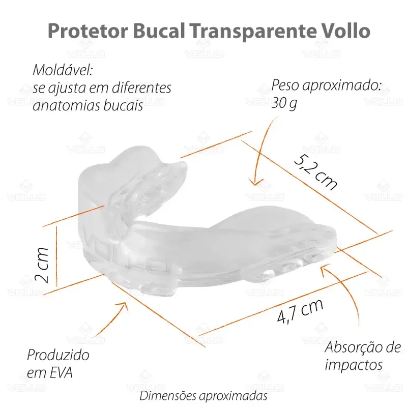 O Protetor Bucal Vollo é um item indispensável, ele oferece alta capacidade de absorção de impactos e se molda para um ajuste perfeito e confortável.
