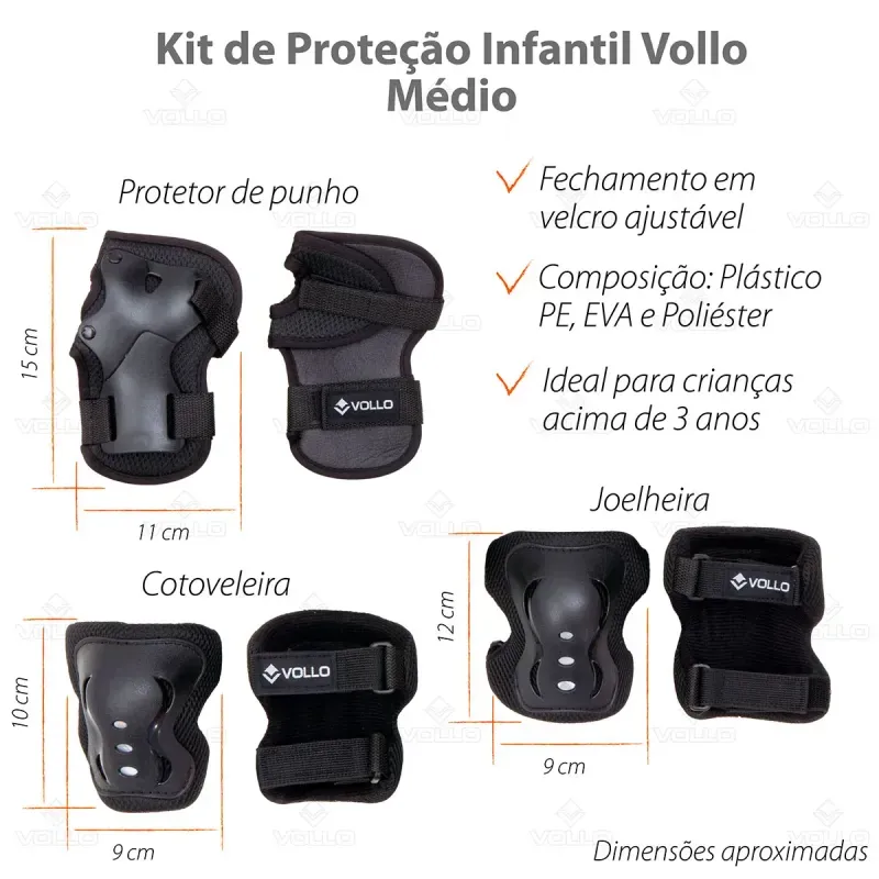 São equipamentos de qualidade que além de garantirem a integridade física, o kit de proteção também são determinantes para mais liberdade e confiança na execução das manobras! Deixe a preocupação de lado e adquira já o seu Kit de Proteção Infantil Vollo!