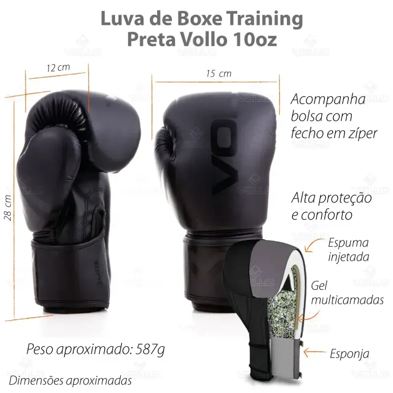 Descubra o segredo dos campeões e impulsione sua performance nos treinos e lutas com o Kit Luva de Boxe Training Vollo 10oz e a Bandagem Elástica Vollo de 3 metros. Desenvolvida com PU de alta qualidade, a luva oferece a combinação ideal de durabilidade, conforto e proteção para você aprimorar sua força, agilidade e habilidade no Boxe, Muay Thai e Kickboxing. Seu design moderno e a alta tecnologia garantem maior potência e estabilidade, enquanto a bolsa com fecho em zíper proporciona armazenamento prático e seguro. Invista na sua evolução e sinta a diferença de um equipamento projetado para o seu sucesso!