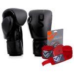 Kit Boxe Vollo Luva 12oz Preto + Bandagem 3M Vermelha Luta