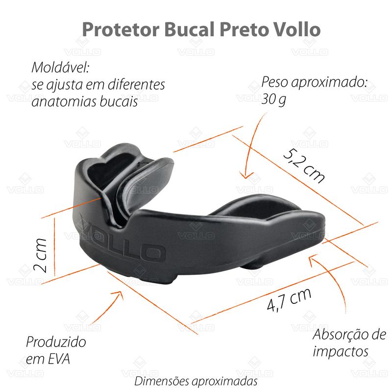 Pensando na sua segurança e bem-estar durante os treinos e competições, o Kit inclui o Protetor Bucal Vollo, um equipamento essencial e indispensável para diversas modalidades de artes marciais como Boxe, Muay Thai, MMA, Jiu-Jitsu e Kickboxing. Fabricado em EVA macio e flexível, este protetor bucal se adapta perfeitamente a diferentes anatomias bucais, oferecendo alta capacidade de absorção e dissipação de impactos, protegendo você contra possíveis danos físicos. Invista na sua proteção, surpreenda seus oponentes e treine com a máxima segurança e performance com o Kit Vollo!