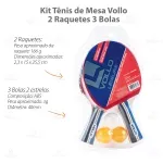 Kit Tênis de Mesa Ping Pong 2 Raquetes e 3 Bolas Vollo