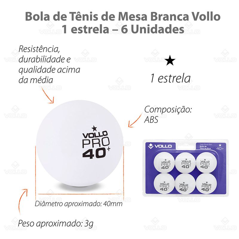 Bola de Tênis de Mesa Ping-Pong Branca 2 Estrelas 6 Unidades Vollo R$ 39,9025% OFFR$ 29,90ou em até 1x de R$ 29,90Comprar