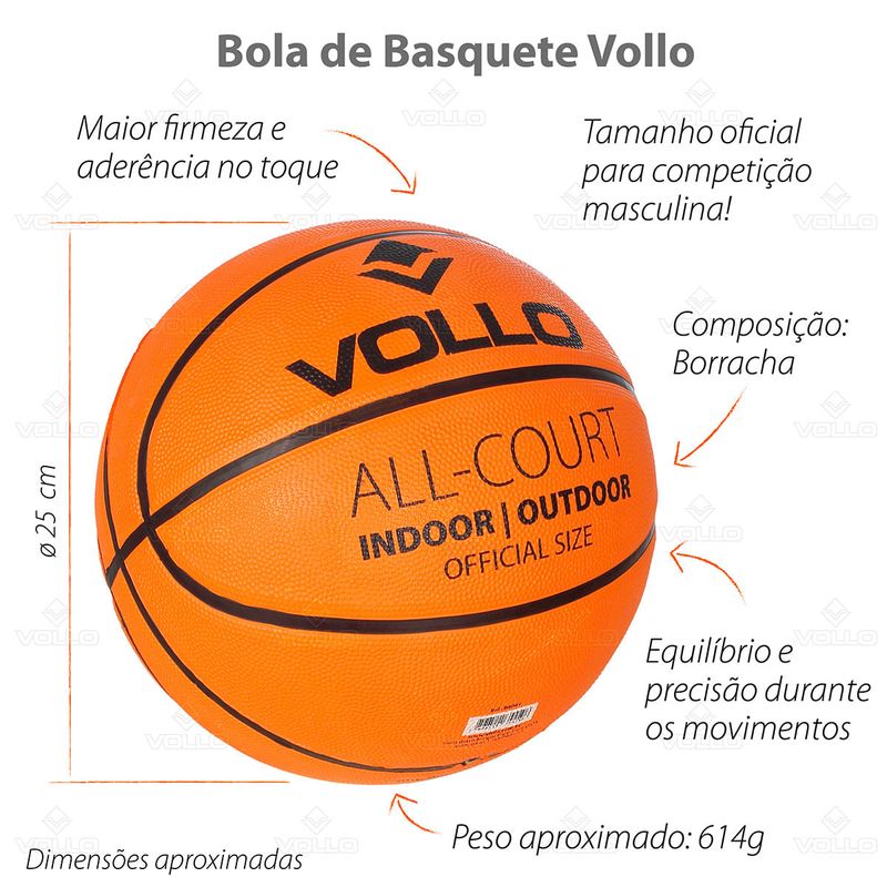 Bola de Basquete Tamanho 5 Indoor Outdoor Vollo R$ 99,9030% OFFR$ 69,90ou em até 1x de R$ 69,90Comprar