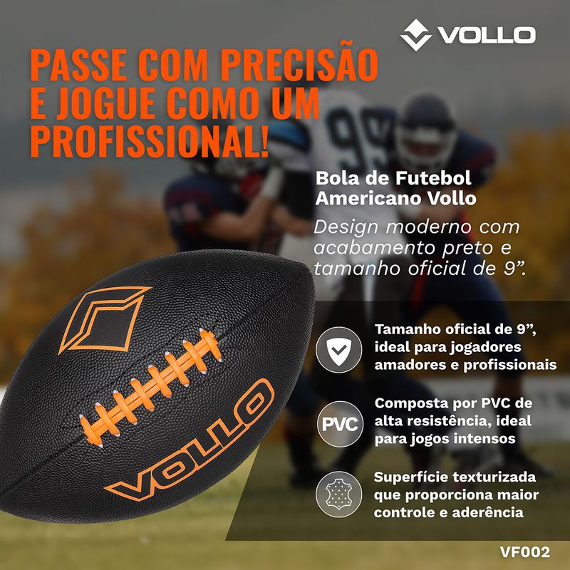 Bola de Futebol Americano Vollo Tamanho Oficial 9 Preta R$ 169,9024% OFFR$ 129,90ou em até 2x de R$ 64,95Comprar