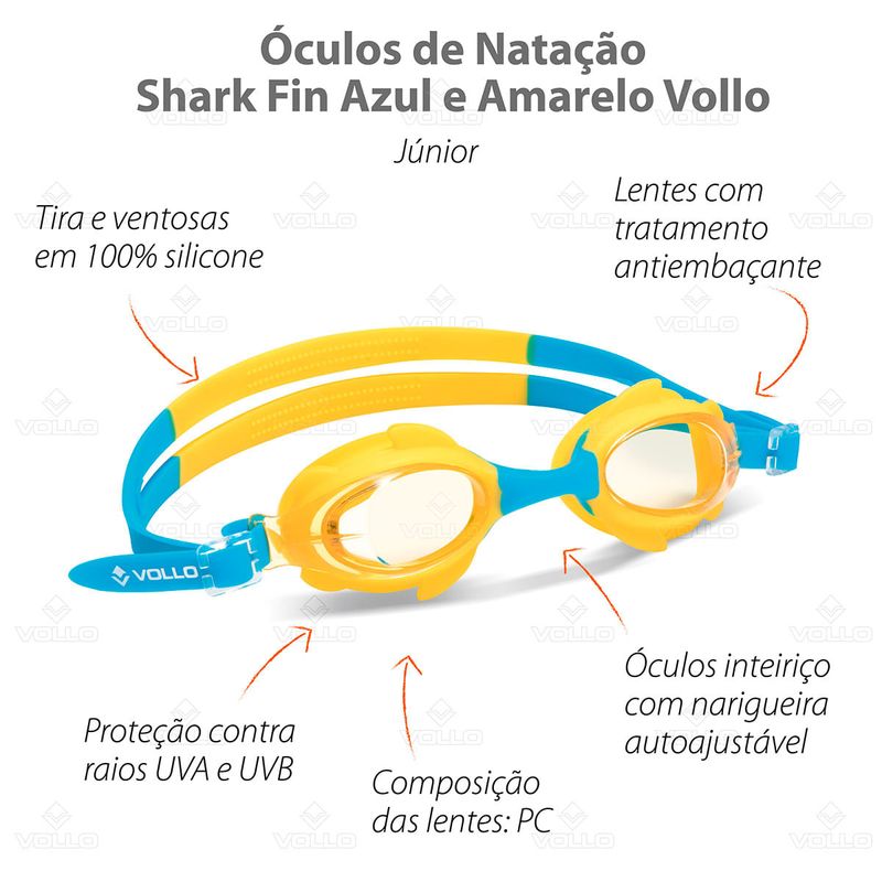 Óculos de Natação Infantil Shark Fin Azul e Amarelo Vollo R$ 69,9029% OFFR$ 49,90ou em até 1x de R$ 49,90Comprar