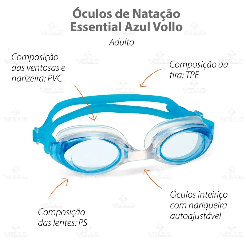 Obtenha muito mais praticidade e conforto durante os treinos de natação com os Óculos Essential Azul Vollo! Com incrível design à prova d'água, os óculos de natação Essential garantem maior proteção e visibilidade durante o mergulho, evitando a entrada indesejada de água durante a prática esportiva.