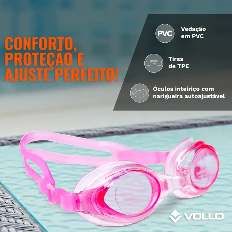 Por possuir narigueira autoajustável o óculos proporciona ao atleta excepcional conforto e flexibilidade durante todo seu uso, atestando muito mais segurança para a realização dos exercícios e confiança para permanecer por mais tempo embaixo d’água. Aproveite a qualidade Vollo e garanta o seu!