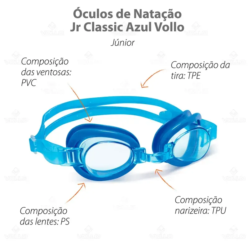 Os Óculos Infantil Classic Azul Vollo se encaixam perfeitamente no rosto dos pequenos nadadores, sendo a opção ideal para as crianças! Com incrível design à prova d'água, os óculos de natação Classic garantem maior proteção e visibilidade durante o mergulho, evitando a entrada indesejada de água durante a prática esportiva.