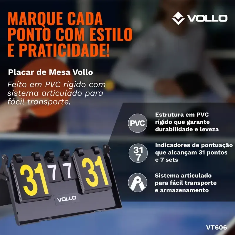 marcador manual de pontos Vollo é a escolha perfeita para levar mais organização e profissionalismo às suas partidas.