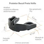 Com matéria-prima em EVA, o protetor bucal da Vollo possui maciez e mais flexibilidade para se ajustar em diferentes anatomias bucais, resultando em uma alta capacidade de absorção dos impactos e também possibilitando uma melhor dissipação da força ou energia recebida. Invista nesse cuidado e surpreenda o seu oponente!