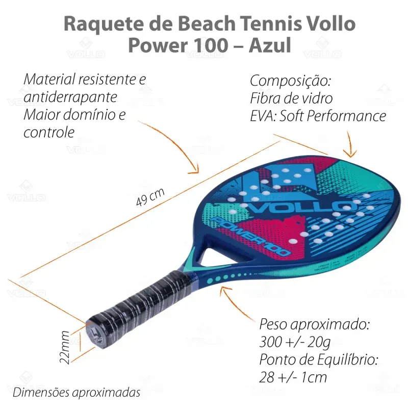 A Raquete Beach Tennis Power 100 Vollo é a opção perfeita para se aventurar na prática do beach tennis, seja se divertindo com os amigos ou treinando profissionalmente com muito mais qualidade e conforto nas jogadas.