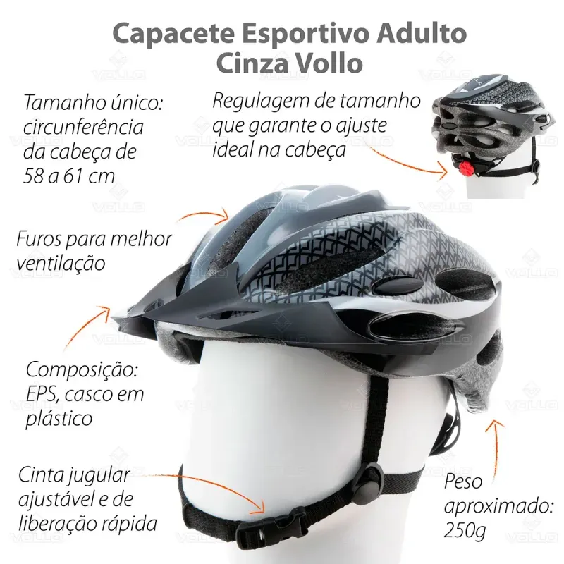 Capacete Esportivo Adulto Laranja e Cinza Vollo
