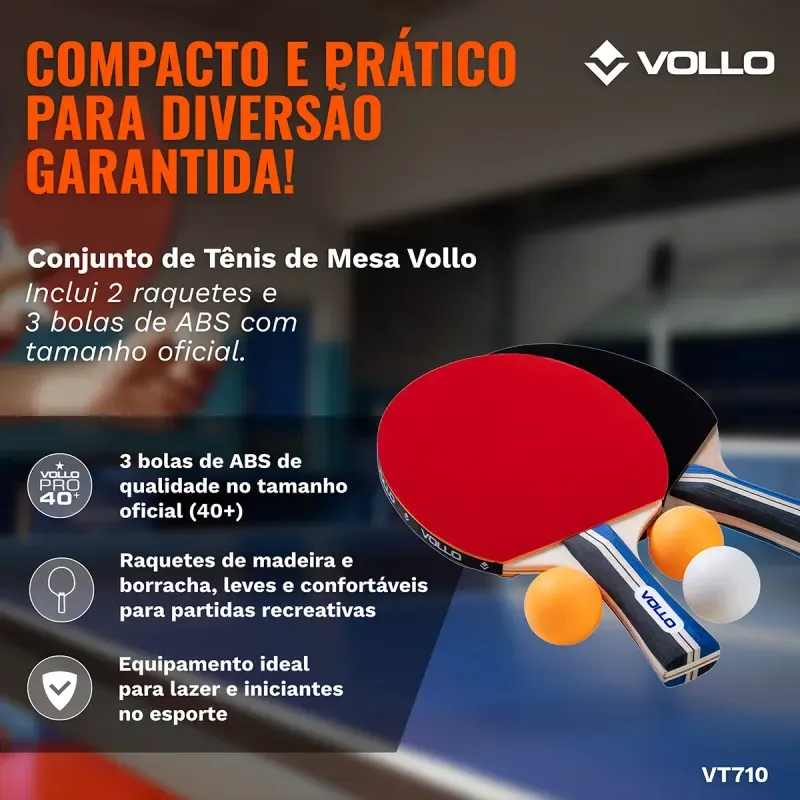 Kit Tênis de Mesa Ping Pong 2 Raquetes e 3 Bolas Vollo R$ 109,9027% OFFR$ 79,90ou em até x de Indisponível