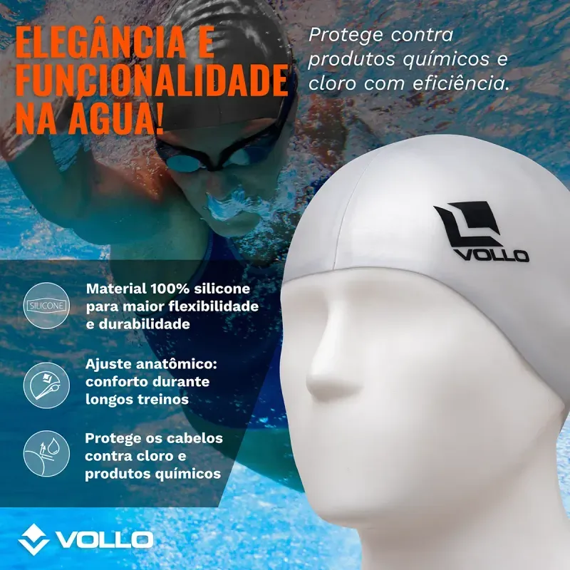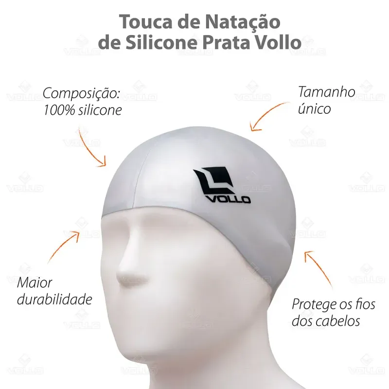 Grandes benefícios para quem pratica natação! A Touca de Natação Prata Vollo é aquele item indispensável para os atletas ou praticantes da natação que não abrem mão de conforto e segurança.
