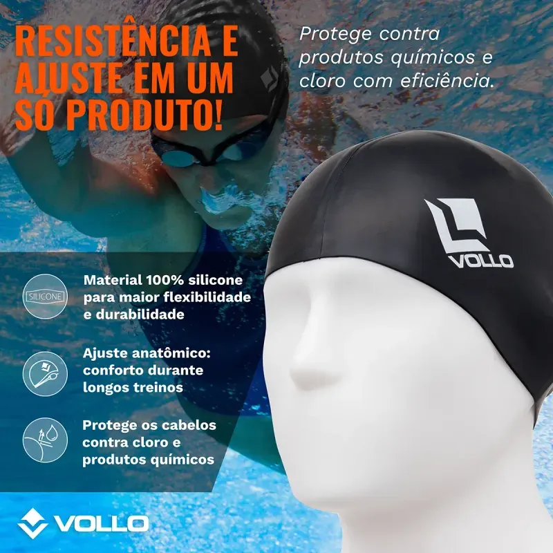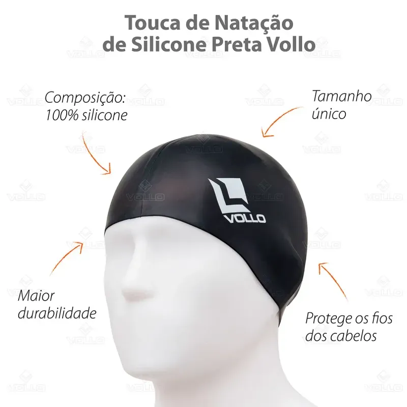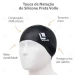 Grandes benefícios para quem pratica natação! A Touca de Natação Preta Vollo é aquele item indispensável para os atletas ou praticantes da natação que não abrem mão de conforto e segurança.